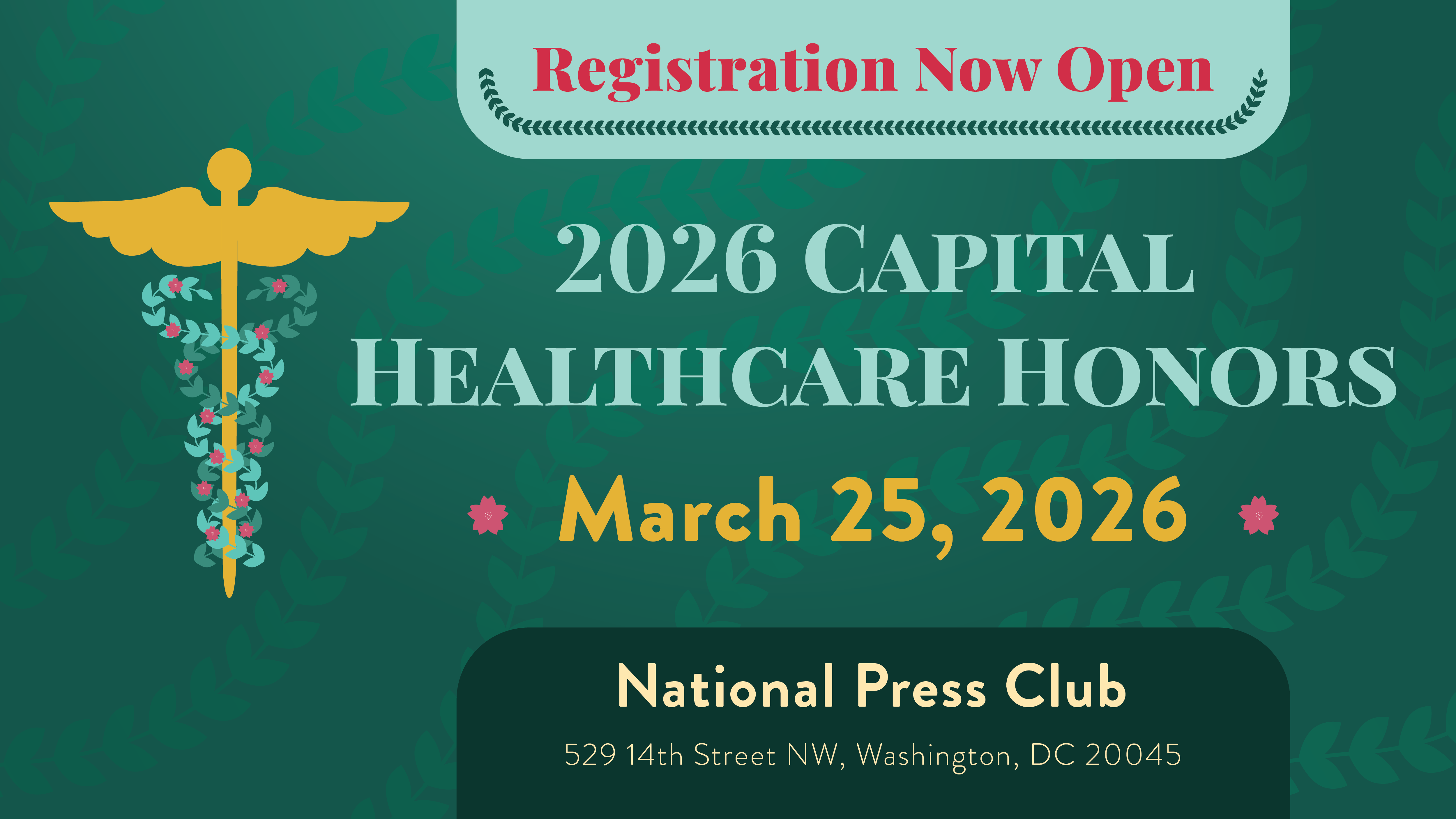 Join the healthcare community to recognize leaders in DC medicine. Plan on reserving your seat (or table) early to ensure you're in the room when the awards are presented.